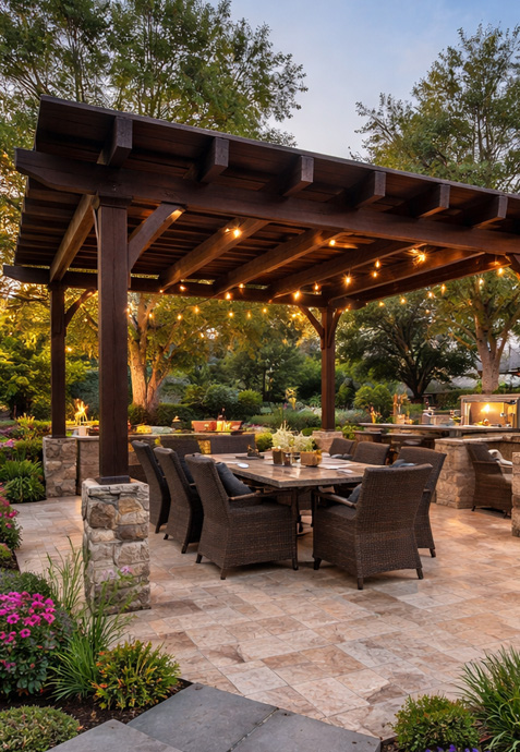 Pergolas add architectural character and a refined outdoor atmosphere, making your patio or garden area feel more complete and inviting.